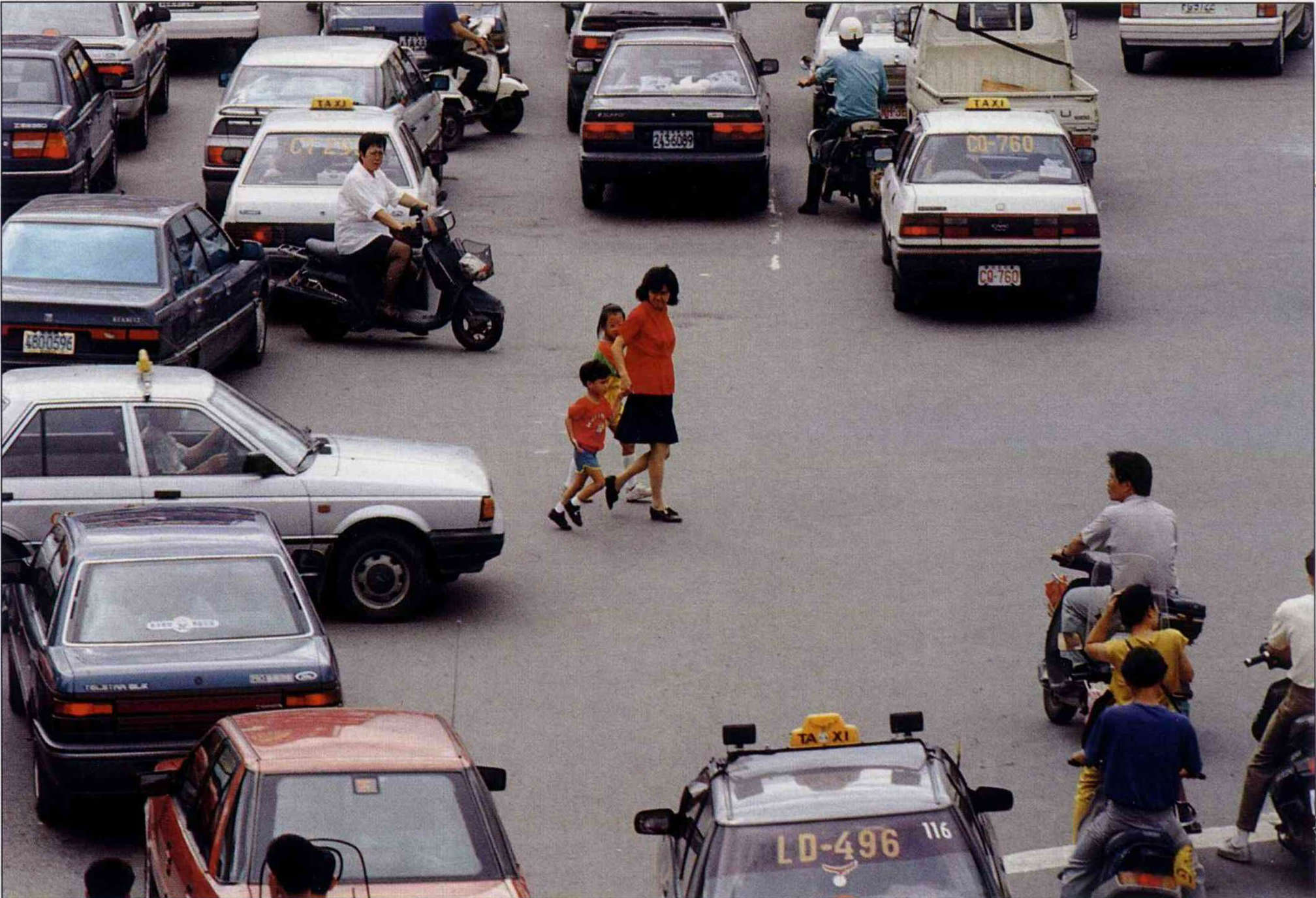 過去的兒童在田野奔跑;現代兒童在車陣裡穿梭,文明帶來便利的同時,卻也讓人失去更多自由。(邱瑞金攝)(邱瑞金攝)