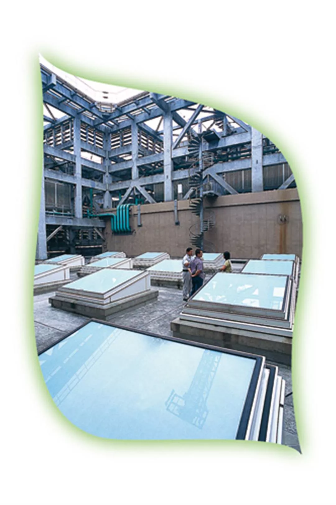飯店的照明、空調、熱水系統等,耗電量最大,節能空間也最大。許多業者以更換省電燈泡因應。上圖新竹國賓飯店屋頂的採光罩,則從源頭起就贏得勝算,十數層的中庭幾乎不需照明。