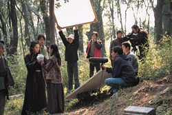 十五分鐘車程外的太湖邊,知名動作導演程小東穿著厚厚雪衣,漁夫帽底下一副大墨鏡,只露出嘴唇,在刮著徹骨寒風的橋頭,以擴音器不厭其煩地要吊著鋼絲的武行一遍又一遍重來。演員孫興一劍刺出,另一位替身武行直直躍起丈餘。反反覆覆一樣的動作,一天過去,卻僅拍了一分鐘的畫面。