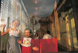 在人車進出頻繁的火車站,透過藝術的進駐,讓旅人在不經意的一瞥中與藝術相會。圖為藝術家黃芳琪的作品《一剎》。(林格立攝)