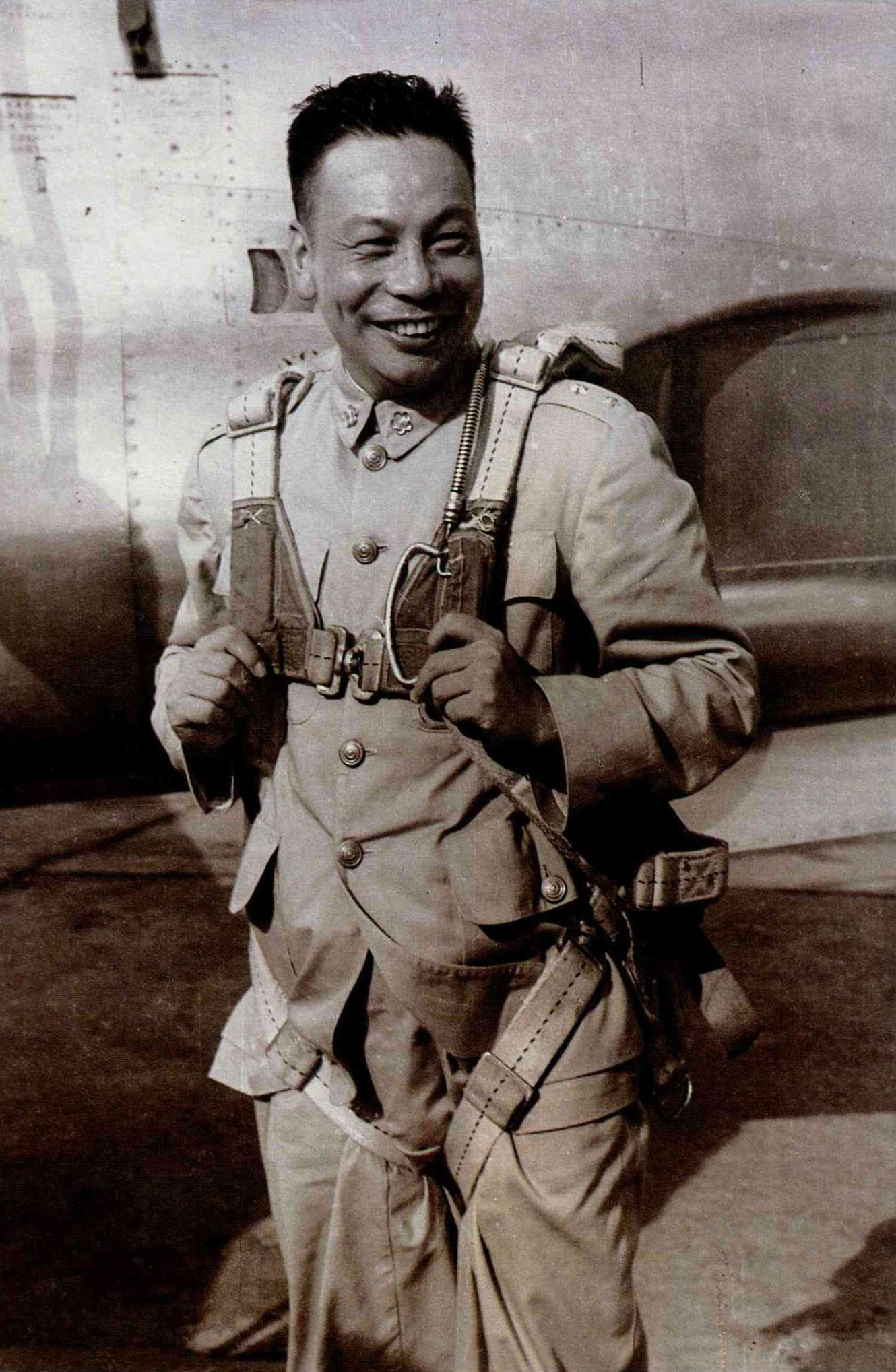 民國四十二年,當時擔任總政戰部主任的經國先生首次應邀訪美;六月十六日,美國軍援我國一批F84噴射戰鬥機,經國先生曾試穿飛行裝。(中央社提供)