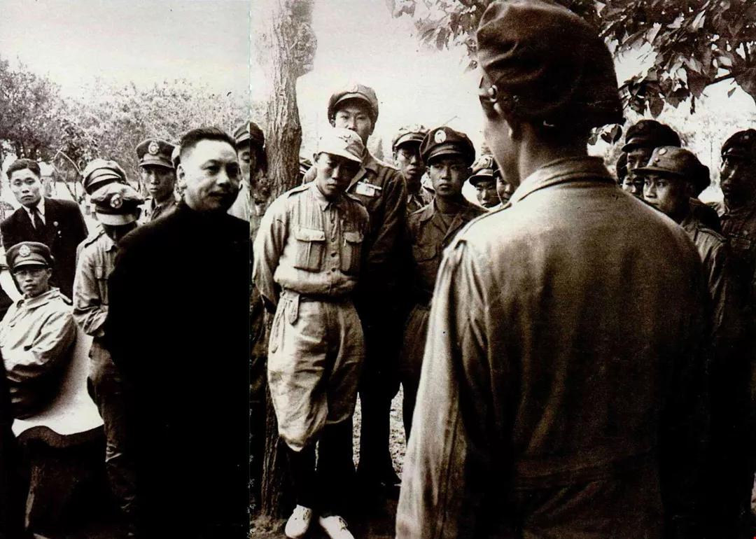 民國卅六年,經國先生在南京歡迎新一軍退役官兵。當時他卅八歲。(中央社提供)