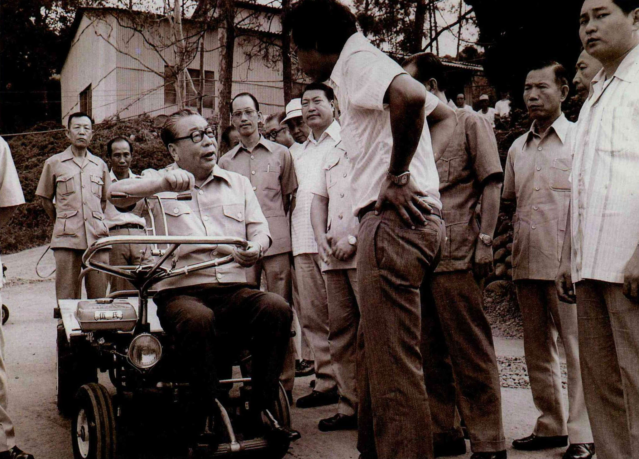 民國六十七年,經國先生來到新竹。他坐上農產品運輸車,一邊試它的性能,一邊詢問農村建設的情形。(新聞局提供)
