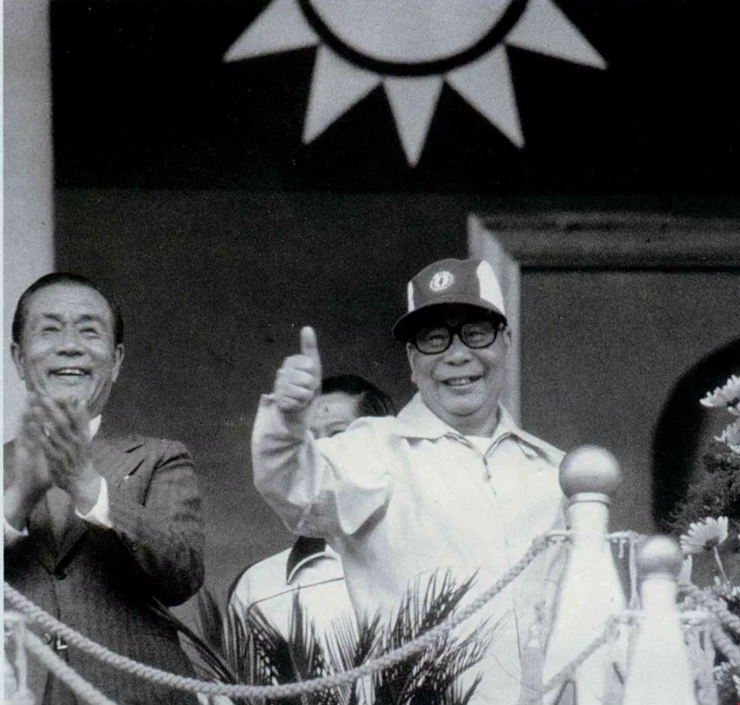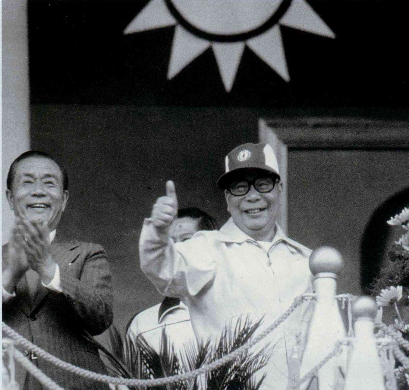 民國六十九年區運會在嘉義市舉行,經國先生與當時的行政院長孫運璿先生來到會場,對選手們的表現豎起大姆指。(李培徽攝)