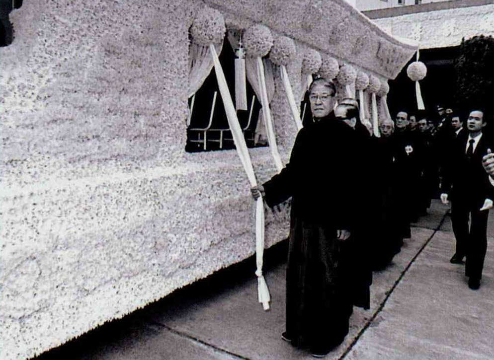 蔣故總統經國先生移靈大典,元月廿二日上午由榮總啟靈至圓山忠烈祠靈堂。李總統登輝先生率領治喪大員在靈車左右二側執紼。(李培徽攝)