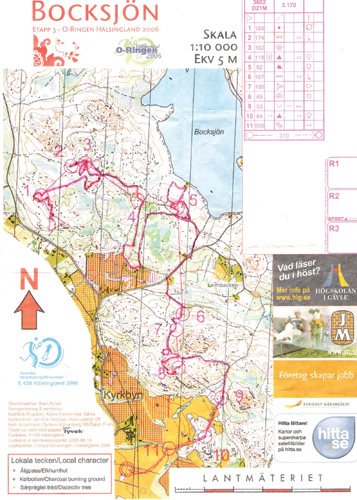 定向地圖以6種顏色標示出地形地貌,以利選手辨識。圖為今年8月初於瑞典舉辦的世界定向運動公開賽使用地圖。