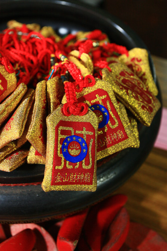 金山財神廟的「財寶袋」作工精緻,內藏「升官發財錢」與「平安財符」,很受信眾歡迎。