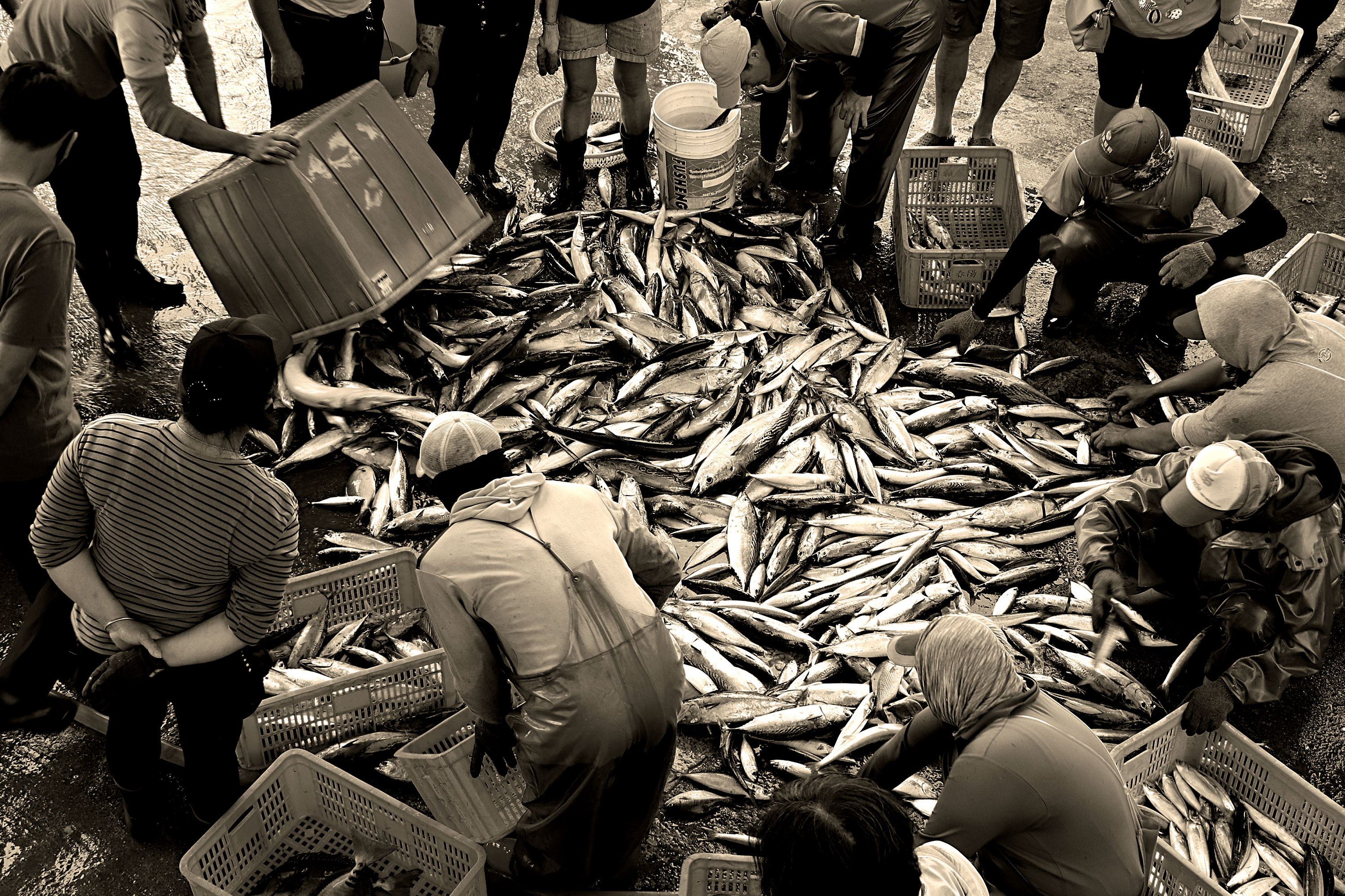 《光華》攝影徵件 新鮮漁貨的滋味:漁業與漁產 2023 1月 EN 日本語 分享: 搶食(余國輝) 澎湖馬公漁港是澎湖最大魚市場,天還未亮時,漁船就滿載而歸,整個魚市場開始熱鬧起來,漁船忙著下貨拍賣,海鷗也前來搶食。冬季主要以大型洄游魚類為主,一尾尾流線型閃著銀光的土魠魚,到拍賣場上總會是眾所矚目的焦點,在地人稱作白金,是漁民收入來源之一。夏天的澎湖,除了盛產的石斑魚,小管、花枝、明蝦也是最鮮甜肥美的季節。 新鮮漁貨的滋味:漁業與漁產扛旗魚(張良一) 一位漁工肩上扛著一條比他身形還要大的旗魚進東港漁市拍賣場。東港是台灣遠洋漁業重鎮,漁民所捕獲的黃鰭鮪魚、黑鮪魚和旗魚等,均會運到東港漁市進行拍賣。魚躍(朱文增) 台灣是美麗的海島,超過200多處漁港,隨著鄰近太平洋與黑潮暖流海域交會,具有得天獨厚的洋流生態,而海產更是來自海洋的禮物。粉鳥林魚港位於台9線蘇澳鎮與南澳鄉公路交界上,一大羅網的漁獲落網而下,鰹魚、飛魚、河魨魚群的新鮮衝擊,應該可以讓辛苦的漁民感到欣慰。浪漫漁港風情(張秀凰) 基隆的正濱漁港早在日治時期為台灣第一大港,曾經是繁榮的商港。基隆市政府積極開發成為休閒為主的觀光漁港,漁港旁的建物塗裝成色彩繽紛的外牆後,有台版威尼斯的美稱,也是遊客打卡的熱門景點,入夜之後靜謐的浪漫氛圍,讓人驚艷不已。富基漁港(潘桐錫) 富基漁港位於北海岸公路上,鄰近富貴角,結合傳統漁業及觀光餐飲的經營發展。尤以捕蟹聞名,每天漁船返港,捕獲海鮮直接銷售。當秋蟹季節來臨,也是蟹肉最肥美的時候,花蟹產量多,價格便宜,漁港內同時還有多家海產店,可以現地採買後交由店家烹煮,馬上享用豐盛的海味料理。早安漁市之美(楊宗翰) 賣場內琳瑯滿目的海鮮,美味取決於搶購及現撈。東澳粉鳥林漁港盛產的鰹魚及馬加,油脂量豐富適合作為生魚片,口感細緻軟嫩。清晨剛入港的漁貨,總有著最講究的饕客與餐飲業者殷切等待。魚忙印象(黃有助) 雲林口湖鄉是台灣養殖烏魚子的大宗產地,每年的入冬之際,正是捕烏魚的季節,漁民在漁場裡忙碌的採收,雖是辛苦但眼前豐收的情景,也為村裡增加了不少的收入。曬魷魚(黃有助) 雲林口湖鄉的台子村,有兩個特色,一是曬烏魚子,再來就是曬魷魚乾,一片片的魷魚整齊排列掛著,靠著天然的日曬和風乾作用,成就了獨特的魷魚乾,也是當地的特產之一。滿載而歸(邱俊豪) 台灣是鬼頭刀大國,產量位居全球第四位。到了下午4、5點就有許多人陸續聚集等待漁船入港,冬季的特產就是鬼頭刀,港邊有大型機具可吊起漁船內滿載歸航的漁產。豐收(許嘉恩) 台灣養殖漁業因地理環境不同包括鹹水、淡水與淺海養殖,大宗漁產有午仔魚、虱目魚、吳郭魚、石斑魚、鰻魚、蜆、牡蠣等。尤其俗諺有「一午、二鯧、三鮸、四嘉鱲」,午仔魚美味更是榜上有名。 關鍵字: 漁業 漁產 漁業 分享: