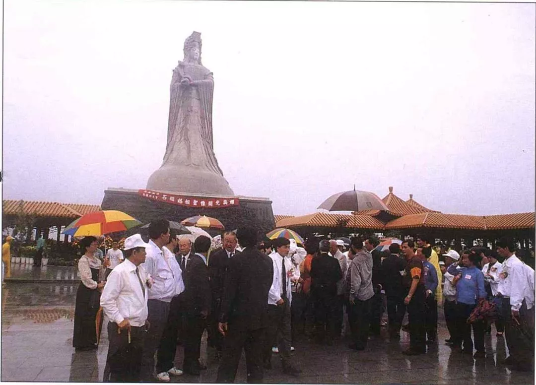 台灣的媽祖多自湄洲分靈前來,台灣媽祖進香團經常到湄洲媽祖祖廟參拜。今年媽祖生日前,湄洲媽祖祖廟來台贈送媽祖雕像,三百年前保佑橫渡黑水溝來台先民的媽祖婆,還會看顧台灣海峽無戰事嗎? (薛繼光攝)。