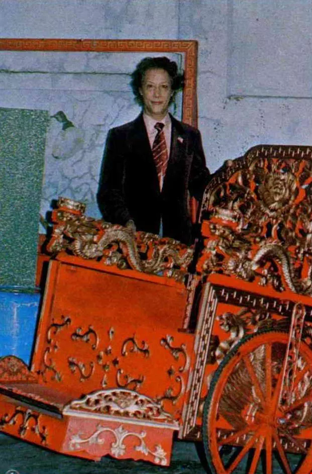 圖1.:華夏達在「貴妃醉酒」一劇中將木雕「鳳輦」搬上了舞台。