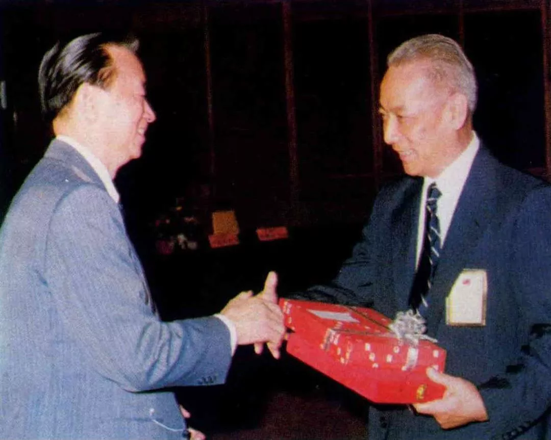 今年榮獲美國醫學最高榮譽凱撒獎的我國旅美醫師余南庚博士,專題演講後,接受榮總丁副院長致贈的紀念品。(榮民總醫院提供)
