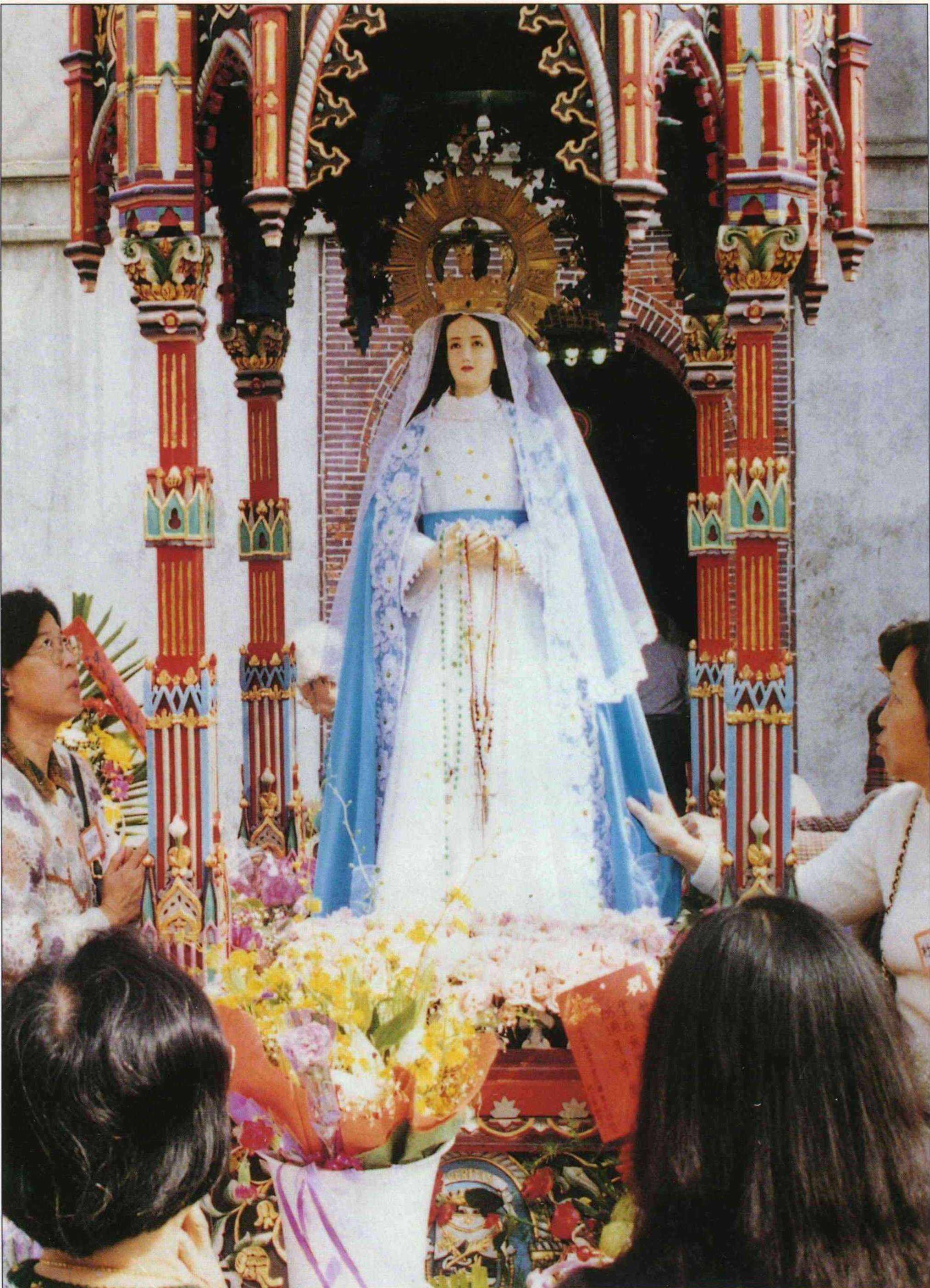 基督教嚴禁崇拜「偶像」,而系出同源的天主教徒則可以不反對中國傳統拈香、祭祖等儀式;天主教崇拜的聖母瑪莉亞來到台灣,也入鄉隨俗「效法」起媽祖,乘轎四方出巡,接受教友崇拜。