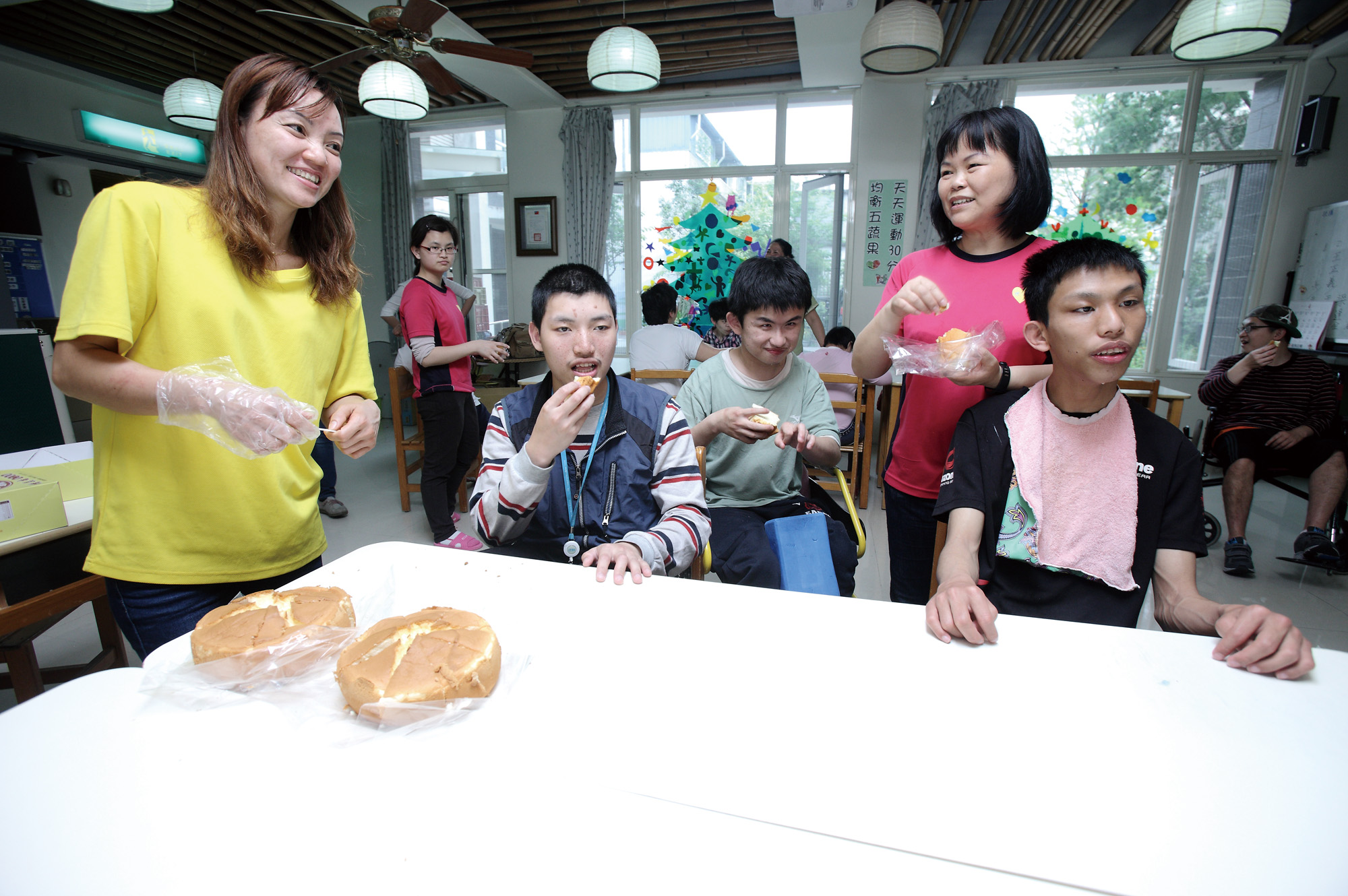 阮美蘭來到世光教養院附設拙茁家園親手送上蛋糕,見到院生吃得津津有味,她也感到萬分開心。 (黃仲新攝)