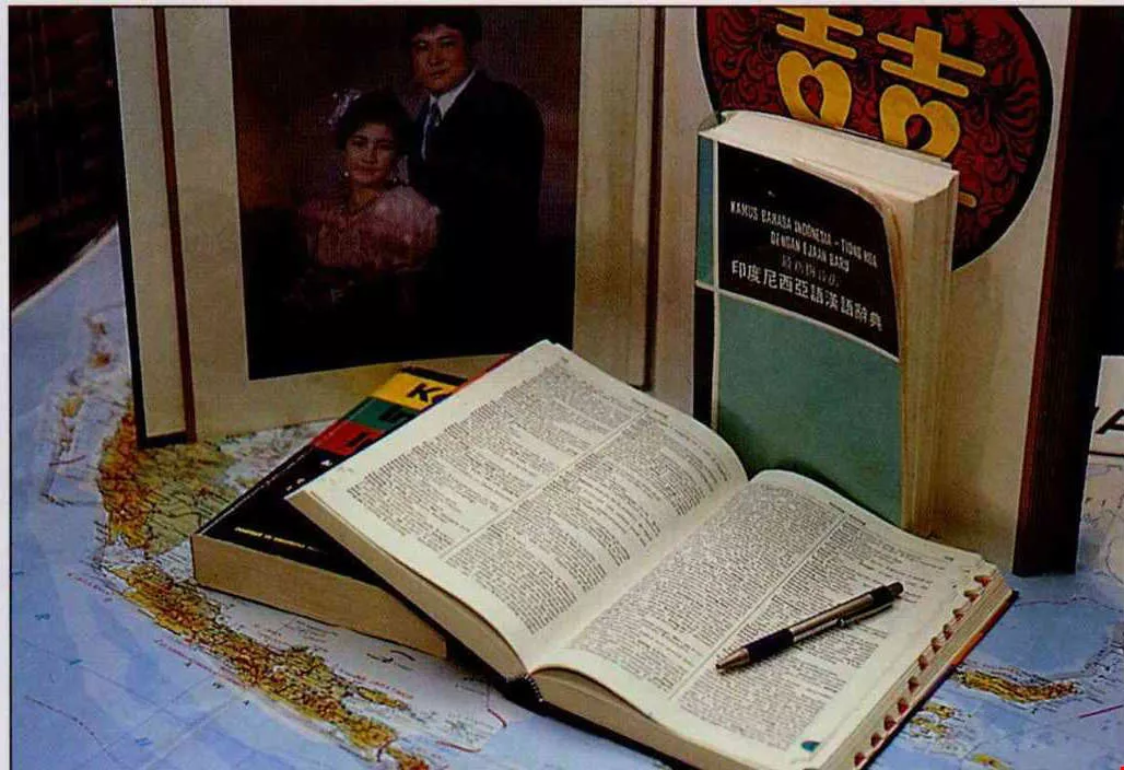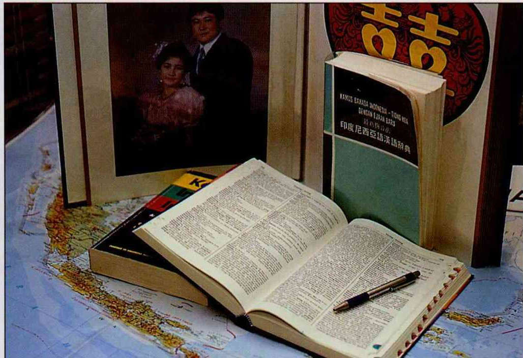 雖說同是華人,但二、三十年來「異國」的成長背景,有時難免造成溝通不良。有心的先生會不時借用辭典,以求彼此充分瞭解。(張良綱)