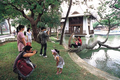 正午的陽光下,日月湖上儷影雙雙、親子嬉遊。屹立超過一世紀的湖心亭,經過幾度修繕,風華依舊,而人事雖有流轉,但在台中這個四季如春、災禍不侵的幸運之都,遊人的笑容依舊燦爛,宛如當年。