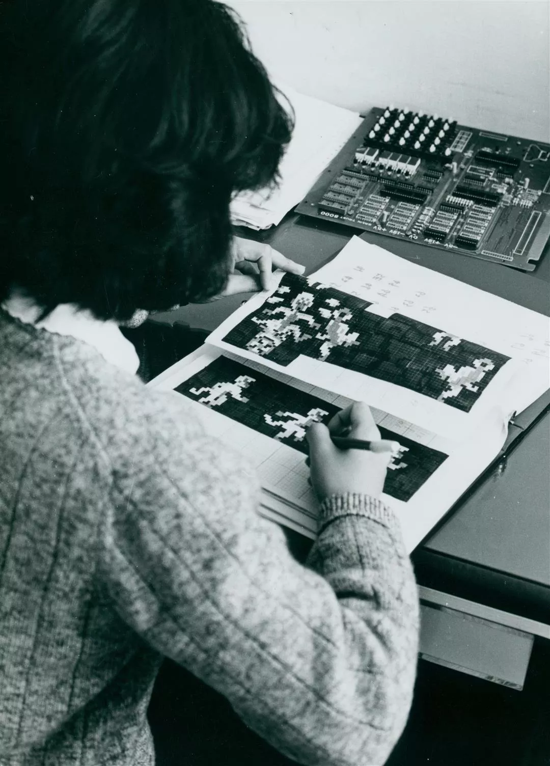電玩螢光幕上所顯現的畫面,是美工人員依卡通影片製作方式一張一張繪製出來的。(恆水)