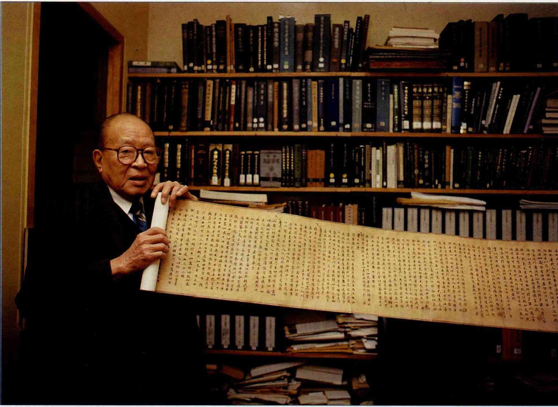 漫步書架間,又彷彿回到歷史洪流中。沈津抽出架上圖書,一一解說。