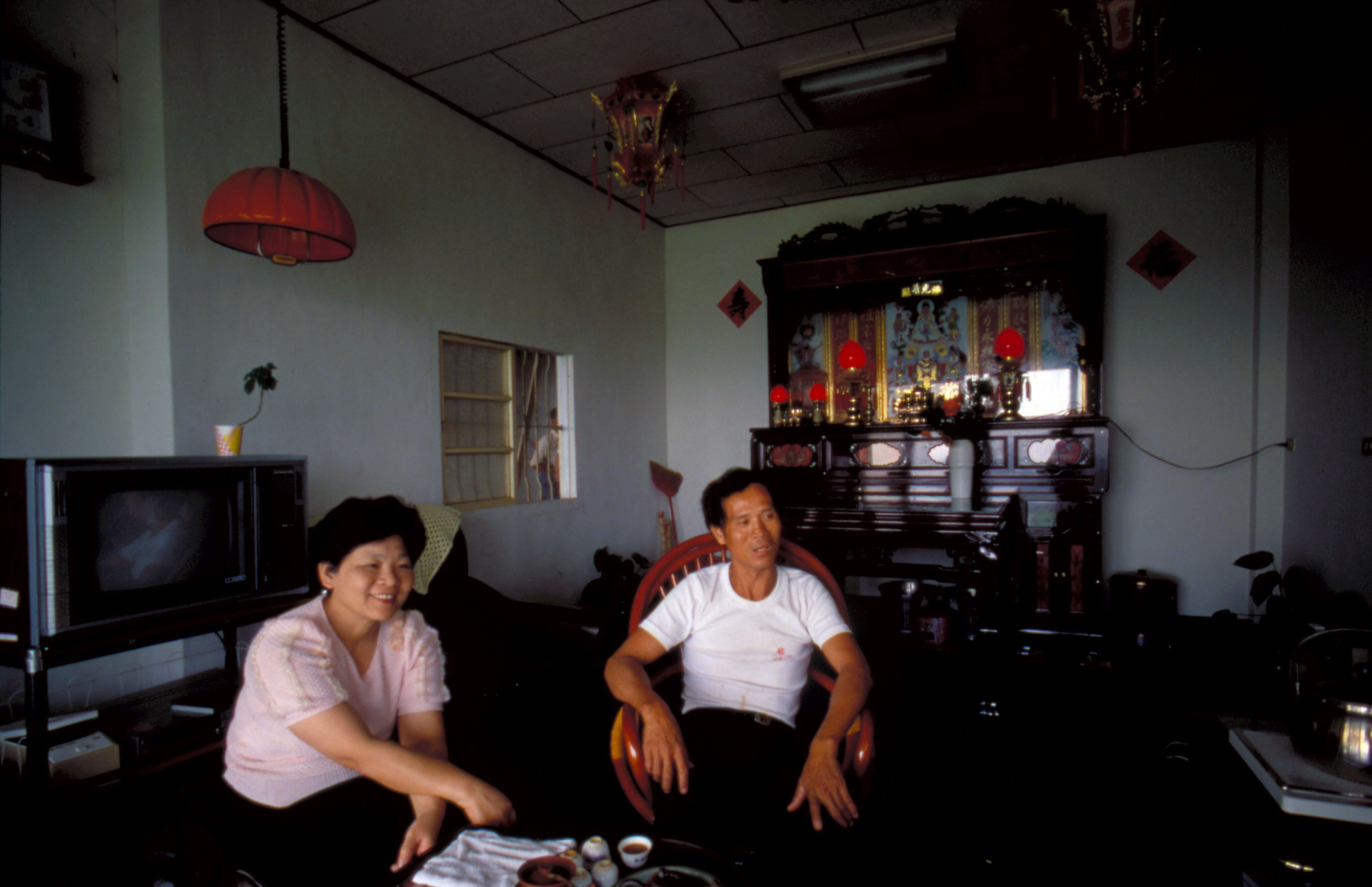 吳敦瑤夫婦閒來泡茶。(張良綱)