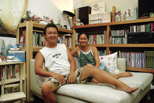 這間民宿的名字就叫「自己家」,主人是一對已經老夫老妻模樣的同居男女,3年前才移居花蓮。1975年次的男主人阿正是無師自通的木工,也擔任網球教練,大他一歲的女主人趙書琴則凡事喜歡自己動手做,室內設計與布置全憑天分直覺,加上阿正的父親──資深水泥師傅的鼎力相助,在3層樓共60多坪的透天厝內,打造出舒適素靜的居住空間。