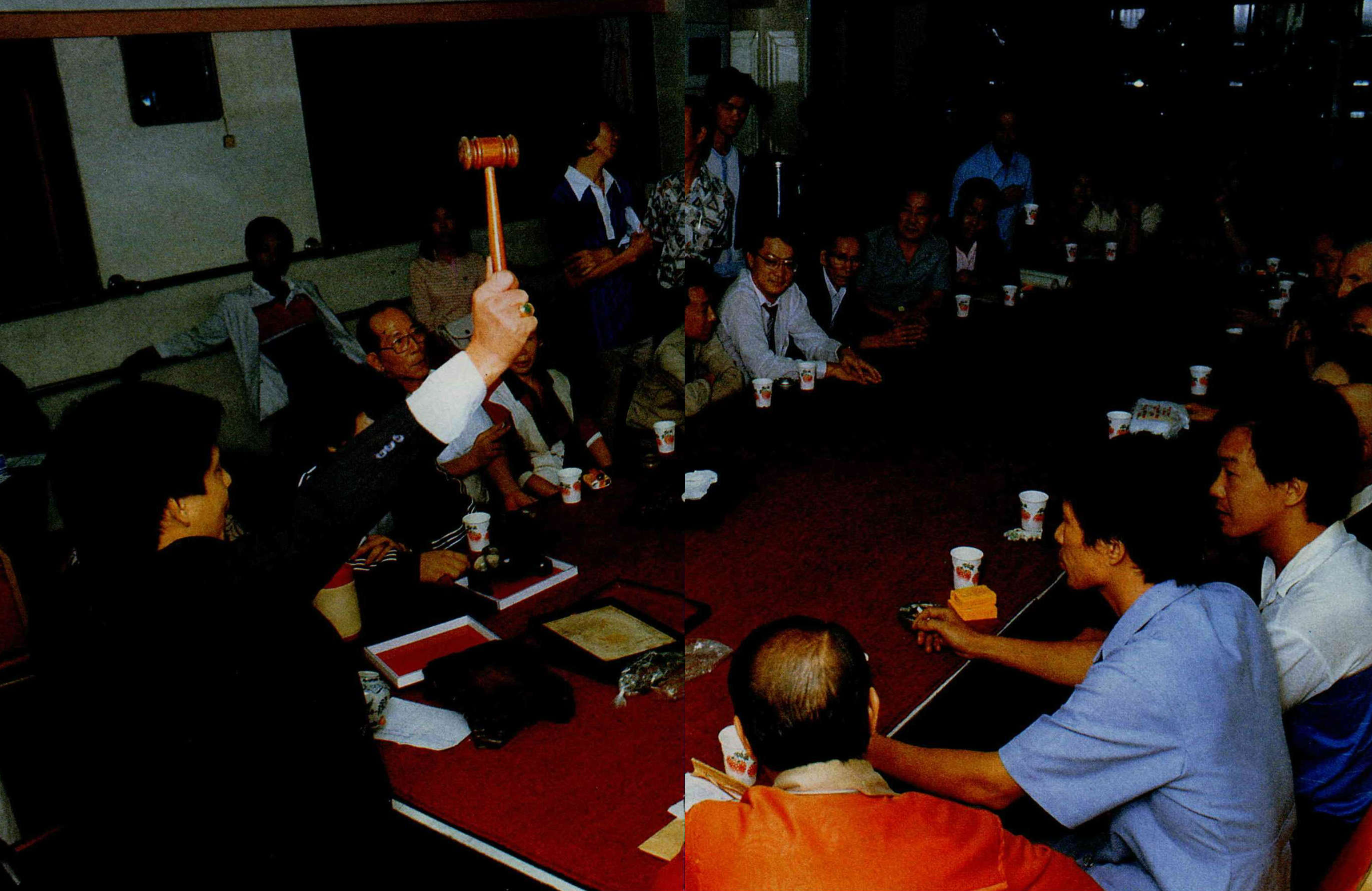 古董拍賣場每月定期舉行拍賣,拍賣場主人木槌一敲,便告成交。(陳敏明)