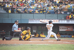 在已有七十年歲月、看板上還是人工手寫計分的台中球場邊,女球迷隔著低矮的圍牆把珍珠奶茶遞給攻守交換之中的球員。整場比賽下來,球員和球迷間的互動不斷,簽名、送禮物、拍照,球迷隔著低矮的護欄呼叫球員名字,球員也不吝微笑回應。