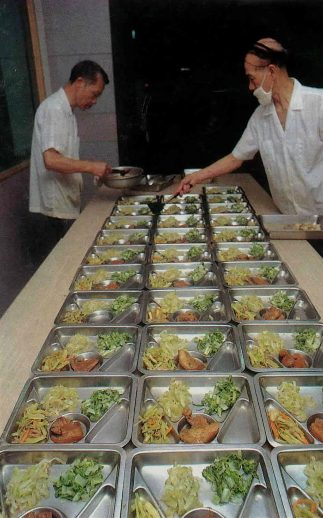 重光樓為老人們細心打理一天三餐,五菜一湯加水果,都經過細心搭配。「老人家愛吃蔬菜,但是為顧及營養,還是要有魚有肉,」頤養園主任李慶炎說,最特別的是湯,都是一盅、一盅熬出來的。當天提供的是四物雞湯,味道不俗。