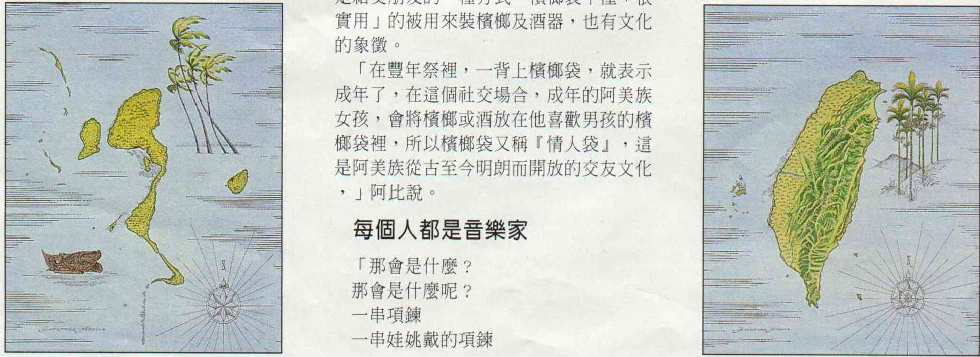 大家感到最好奇的問題是:假使如人類學家所說,新幾內亞與台灣原住民,在千年以前,的確同出一源的話,那麼,他們之間的歌謠,有何共通之處?