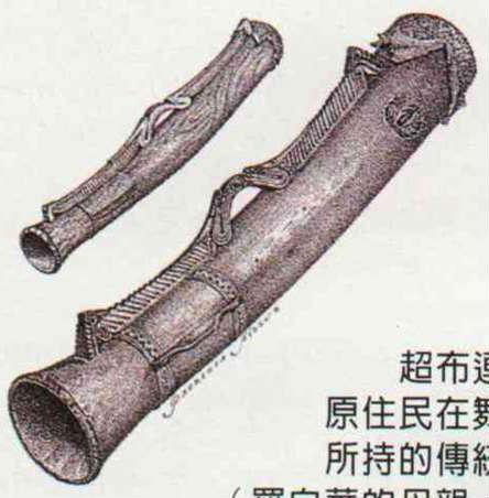 超布連島的原住民在舞蹈時所持的傳統鼓。(羅白華的母親,派翠希亞•希爾絲繪圖)
