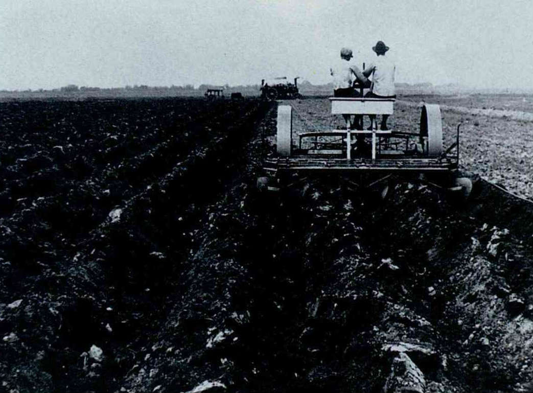 廿、卅年前一切都比較克難,蔗農以蒸汽犁築畦,並設置臨時輕軌車道搬運甘蔗。(台灣糖業研究所提供)。