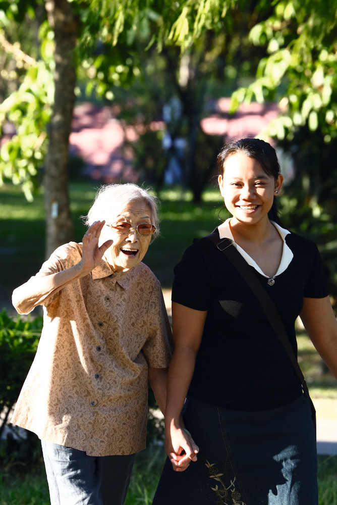 小學老師退休的平慶雲,領有終身俸,生活無虞,加上身體硬朗,來去自如,至今衣服仍自己洗燙,生活打理得有條不紊。她每天一早就會到住家附近的青年公園跳元極舞、做健康操,定期到教堂擔任志工,負責共餐打菜,與教友們打打麻將、唱唱歌。