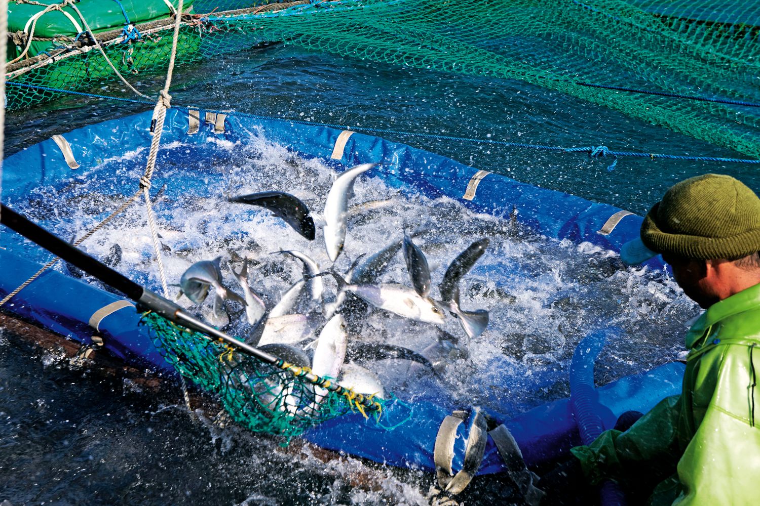 將海魚定期撈進淡水中洗澡, 讓魚身上的寄生蟲因滲透壓改 變而死亡,此舉可在不投藥的 情況下,降低魚隻染病的風 險。(天和鮮物提供)