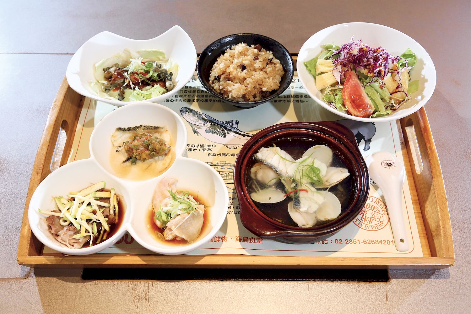 天和海島食堂為實現從產地到餐桌的理想,推出 「鮮食調理吧」,為上班族、銀髮族準備營養均 衡的小份量食材,講求新鮮現煮,健康無毒。