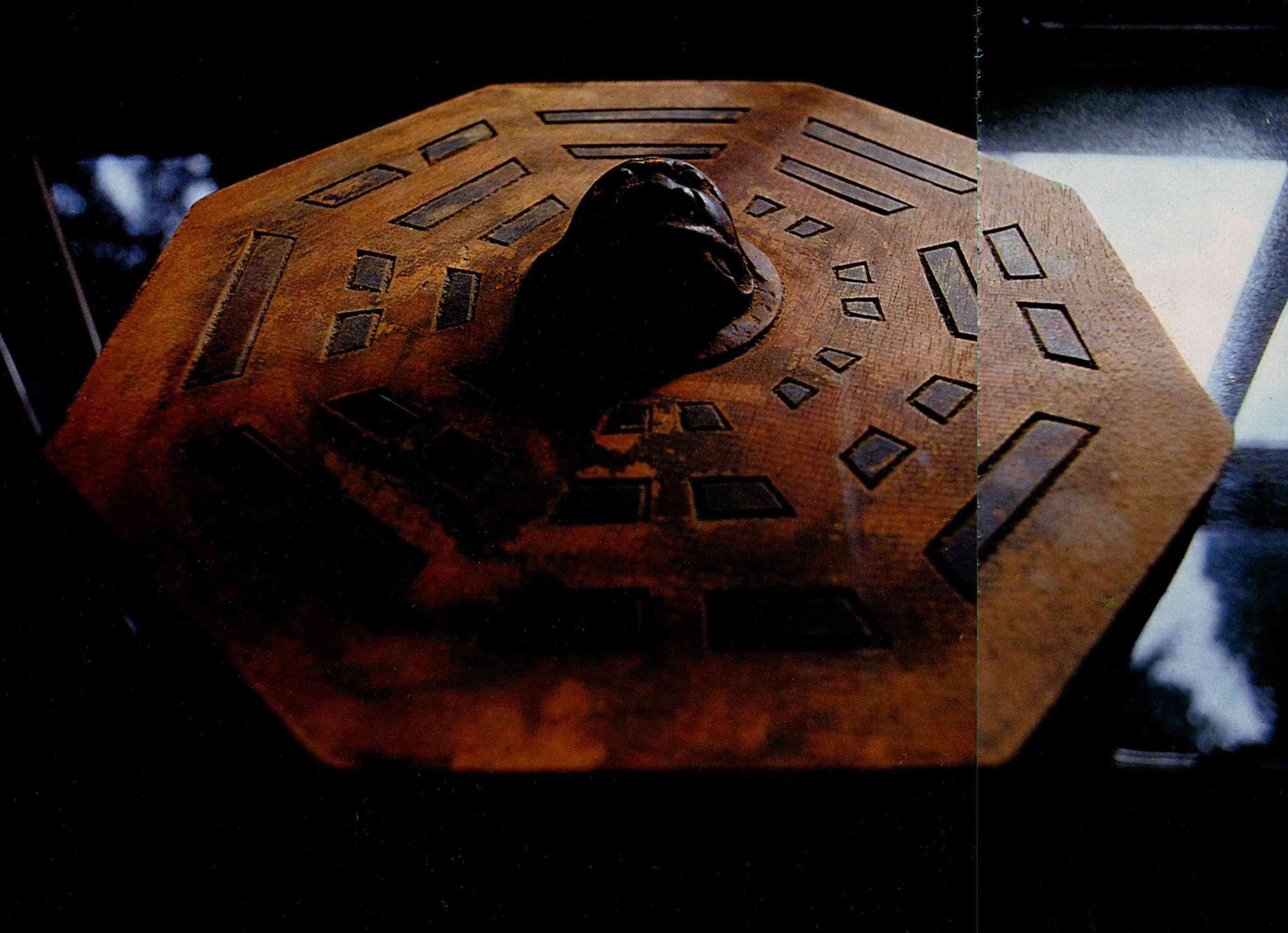 八卦正中的獅面和媽祖神像,已擺脫誇大的形式,以十分具象的面孔出現,但功能卻與圖騰類似。