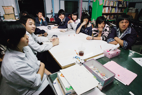 段考前的星期五晚上,鐵皮搭建的「台東教育發展協會」聯合辦公室兼書庫裡人聲鼎沸,十幾位參與教育部「攜手計畫」國中基測提升方案的國3學生,在放學後匆匆買了炸雞排、奶茶陸續進來,一面啃雞排一面與同學哈拉。