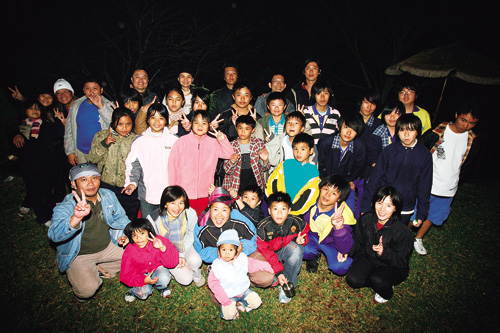 陳爸(前排左一)為參與「單車挑戰花蓮」的孩子舉辦烤肉慶功大會,孩子們開心之餘,相約明年再一起完成「單車橫越中央山脈」的壯舉。