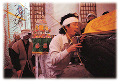 以宗教經文與絲竹雅樂,哀而不傷地陪著亡者遺體走完人生最後的一程。