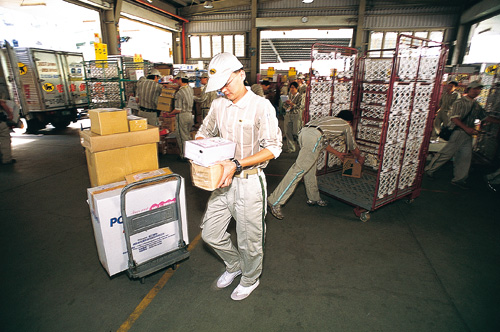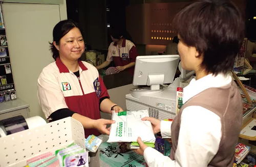 為了達成「今天訂、明天到」的目標,網購業者近年來也親身下海投入倉儲、包裝業務,再配合下游的宅配物流以縮短送貨時間。圖為知名物流業者「黑貓宅急便」忙著出貨的情景。下圖為消費者在7-11超商取貨。