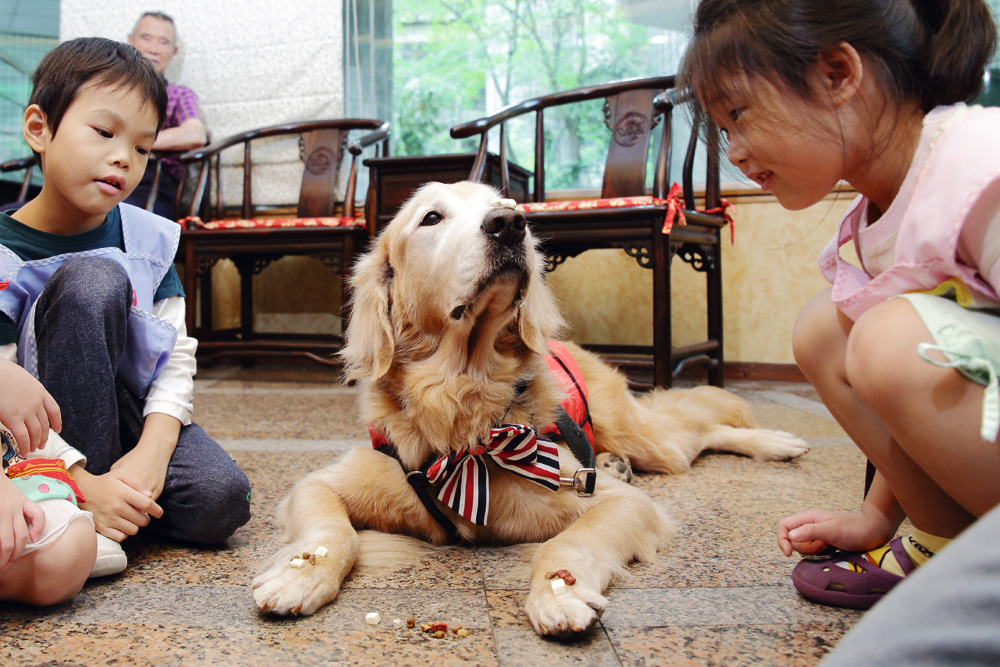 台灣目前約有百隻取得授證的狗醫師,拉不拉多、哈士奇、馬爾濟斯、約克夏、米格魯…等狗種都有,分別在五、六十家醫療機構、安養中心、學校特教班「免費」服務。這些四處懸壺濟世的狗醫師,都是台灣動物輔助活動及治療協會(俗稱台灣狗醫生)培訓出來的動物治療尖兵。