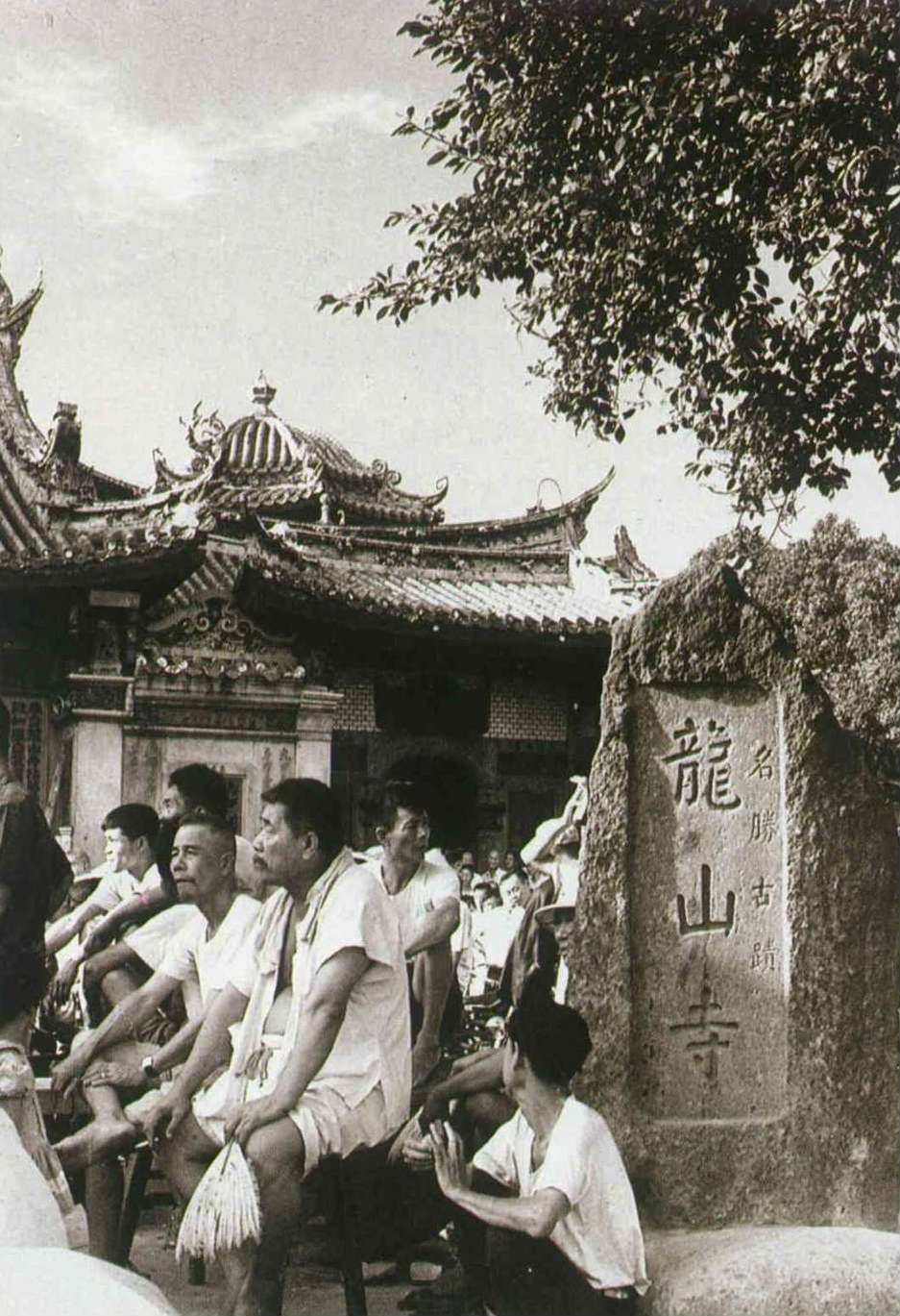 龍山寺的沿革,歷經滄桑。它原是泉州晉江縣安海鄉之龍山寺觀音媽祖的分靈寺廟,建於乾隆三年(一七三八年),經一八一五年的地震、一八六七年的暴風雨、一九一九年的蟻蝕、一九四五年的盟軍轟炸,多次的改建修護,面貌逐漸增減變化。光復後的重建,至少在石材、木雕上,還儘量保留了一九二○年修建時泉州匠師王益順的施工手藝,尤以正殿內的藻井、神龕,及前殿的石柱、壁雕特別出色。在黃則修拍攝的年代中,它還算是座施工嚴謹、精密而考究的寺廟。
