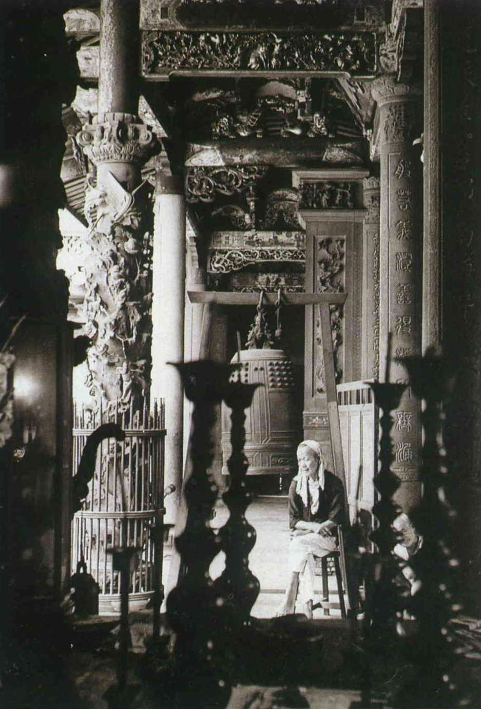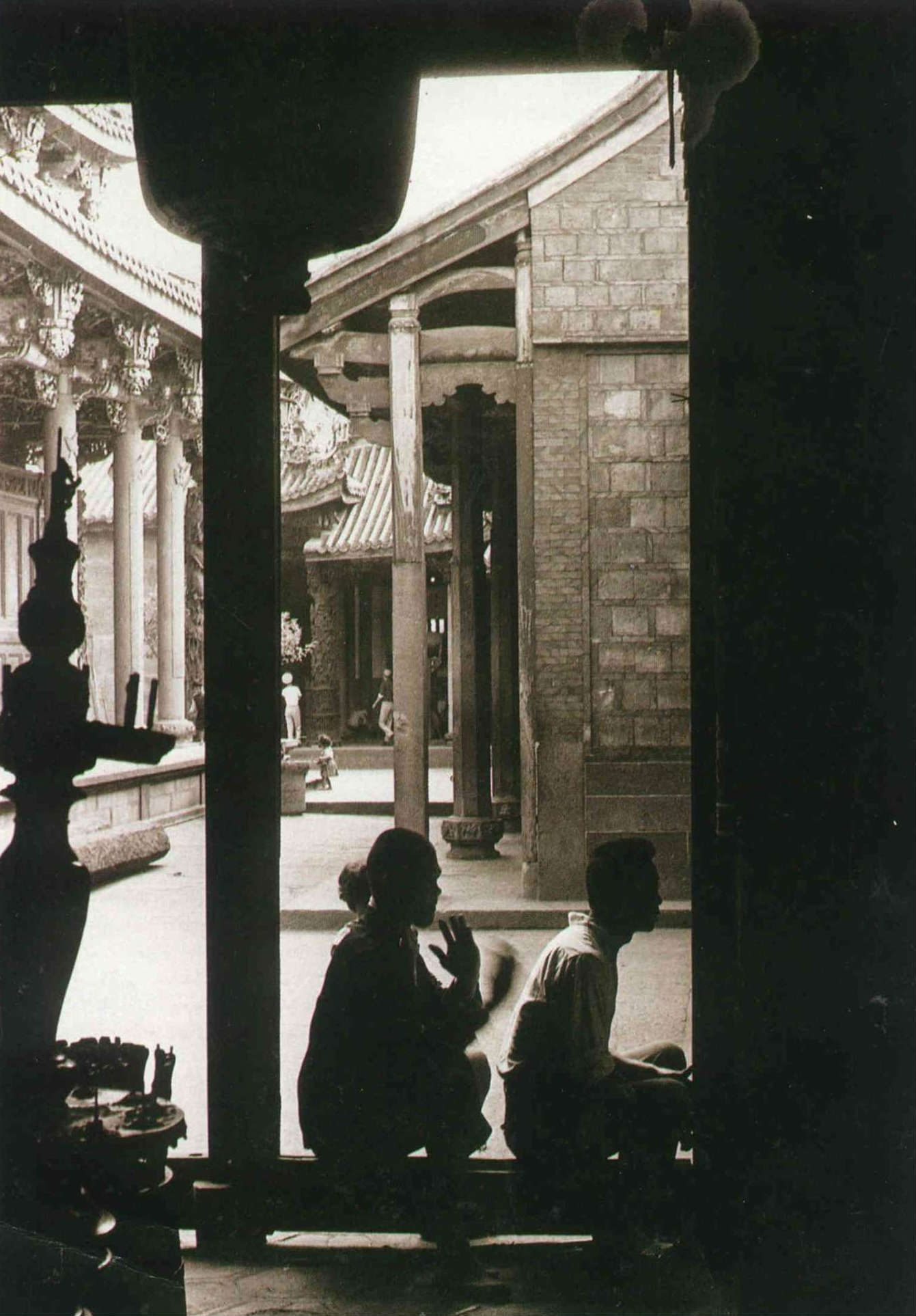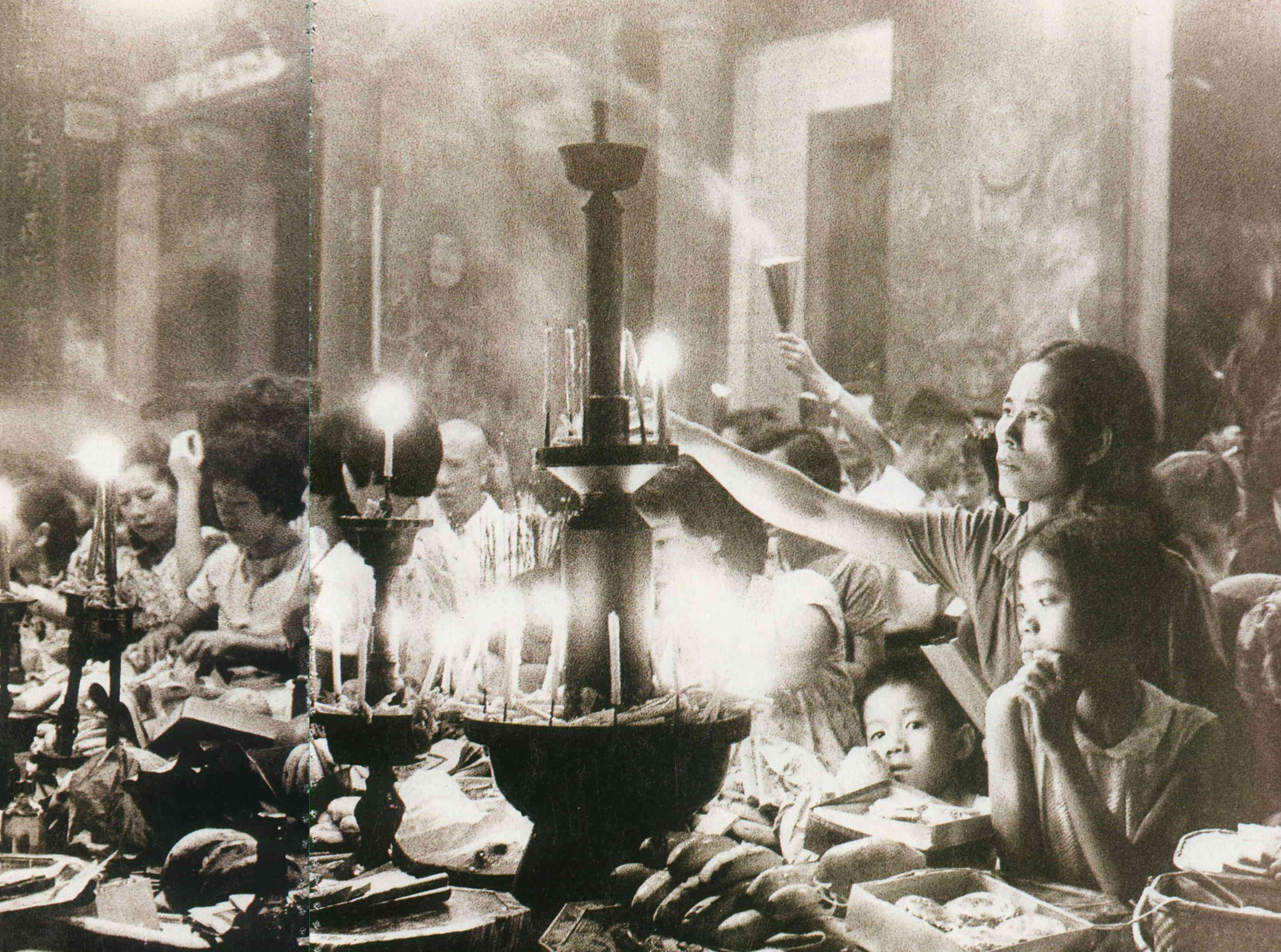 也只有透過這些自然而動人的表情與姿態,在守候的茫然、閒聊的等待、黯淡的燭光、游離的煙霧以及祈求的眼神下,寺廟突然也有了「生命」。那些神像、雕飾與建構活了起來,與人們共同組成一幅屬於四十年代,民間信仰的繪描。
