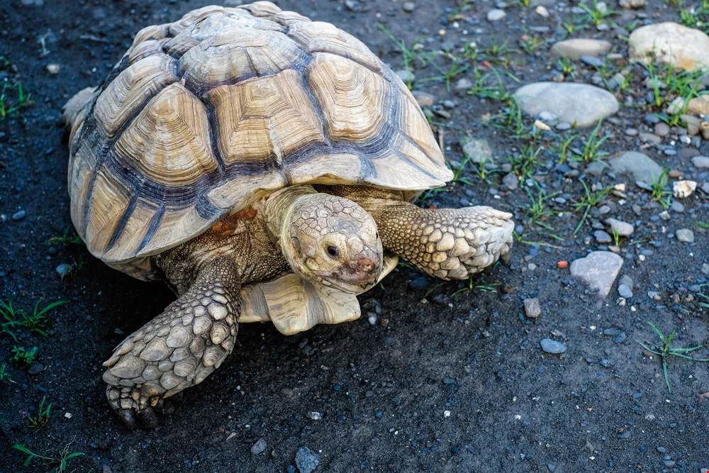 蘇卡達象龜,原產非洲撒哈拉沙漠、薩赫勒地區和西非荒漠草原,是世界第三大陸龜,因原棲地頻遭破壞、盜獵以致數量銳減。
