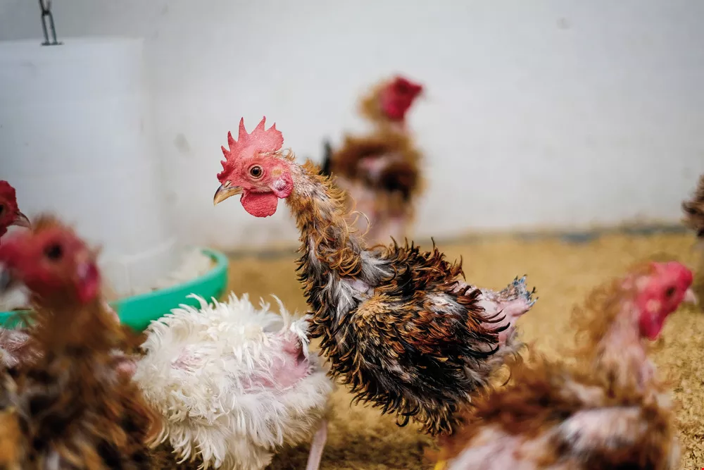 卷毛雞具有卷曲的羽毛,是著名觀賞雞種。保種中心與中央研究院攜手合作,希望能從基因角度解開羽毛卷曲之謎。