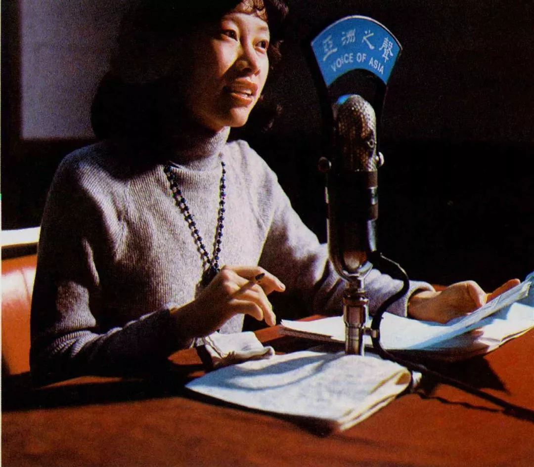 「亞洲之聲」的發射台,電力強達六十萬瓦以上。上:華語節目主持人程茵。