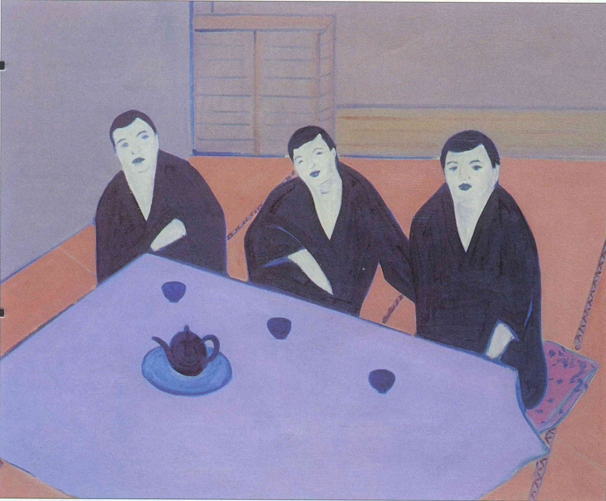 鄭在東在自畫像或家族、友人群像中,充塞著現代人怪誕和疏離的生活情態。走出都市,田園亦蕪;在中部生活的黃進河,從電子琴花車到乩童,以最俗豔的民間色彩,表現民間信俗的怪態。