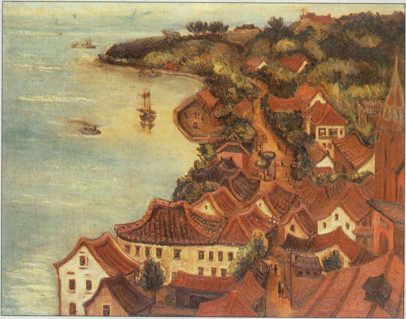 前輩畫家陳澄波作品「黃昏淡水」 油畫一九三一91.5x116.5cm(蘇富比公司提供)(蘇富比公司提供)