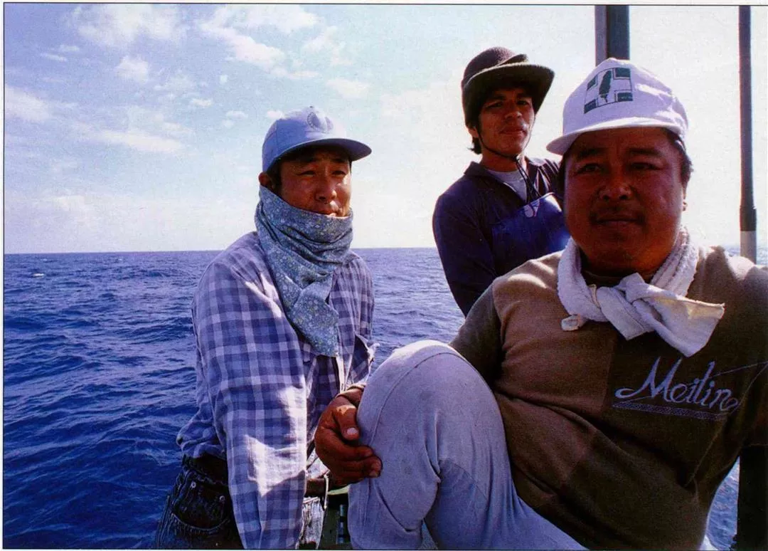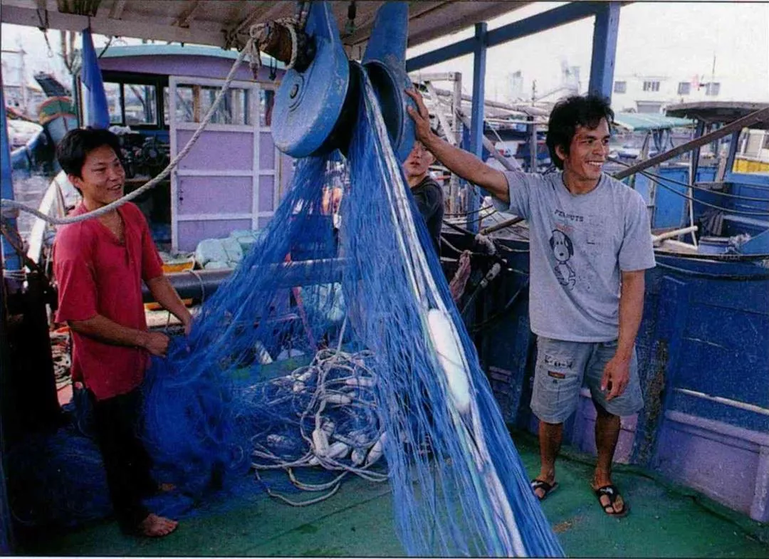「討海第一關是暈船,第二關是時差,」漁夫阿山伸出指頭,宣佈似地指明討海的辛苦。並就親身體驗傳神地描述海上的風浪有多險惡,當風浪將漁船高高舉起後,你從一數到二怴A船仔才會落到浪底;然而浪下來了,心卻還在高高的掛在半空中呢!而所謂的時差是,延繩釣要在子夜一點鐘左右起床,在過完年正冷的紅目鰱魚季,海風打在臉上宛如冰霜一般。