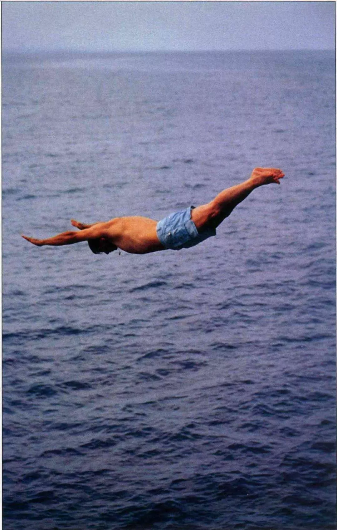 縱身一跳,廖鴻基願來生化作一條魚。(楊世主攝)(楊世主攝)