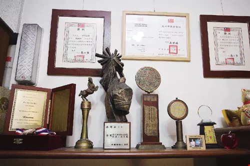 書房裡的獎牌與獎狀,反映著廖輝英好強而自我期望甚高的個性。