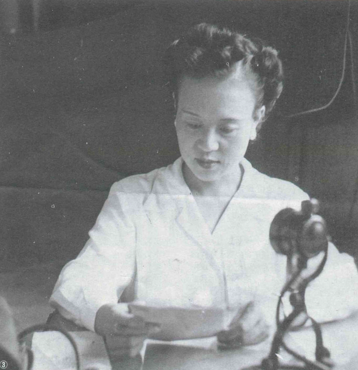 圖3.:對日抗戰期間,在敵機日夜轟炸下,海外廣播從未間斷。照片中的劉若熙女士,現仍在自由中國之聲服務,這是她民國廿七年在重慶播音時的留影。(郭娟秋)