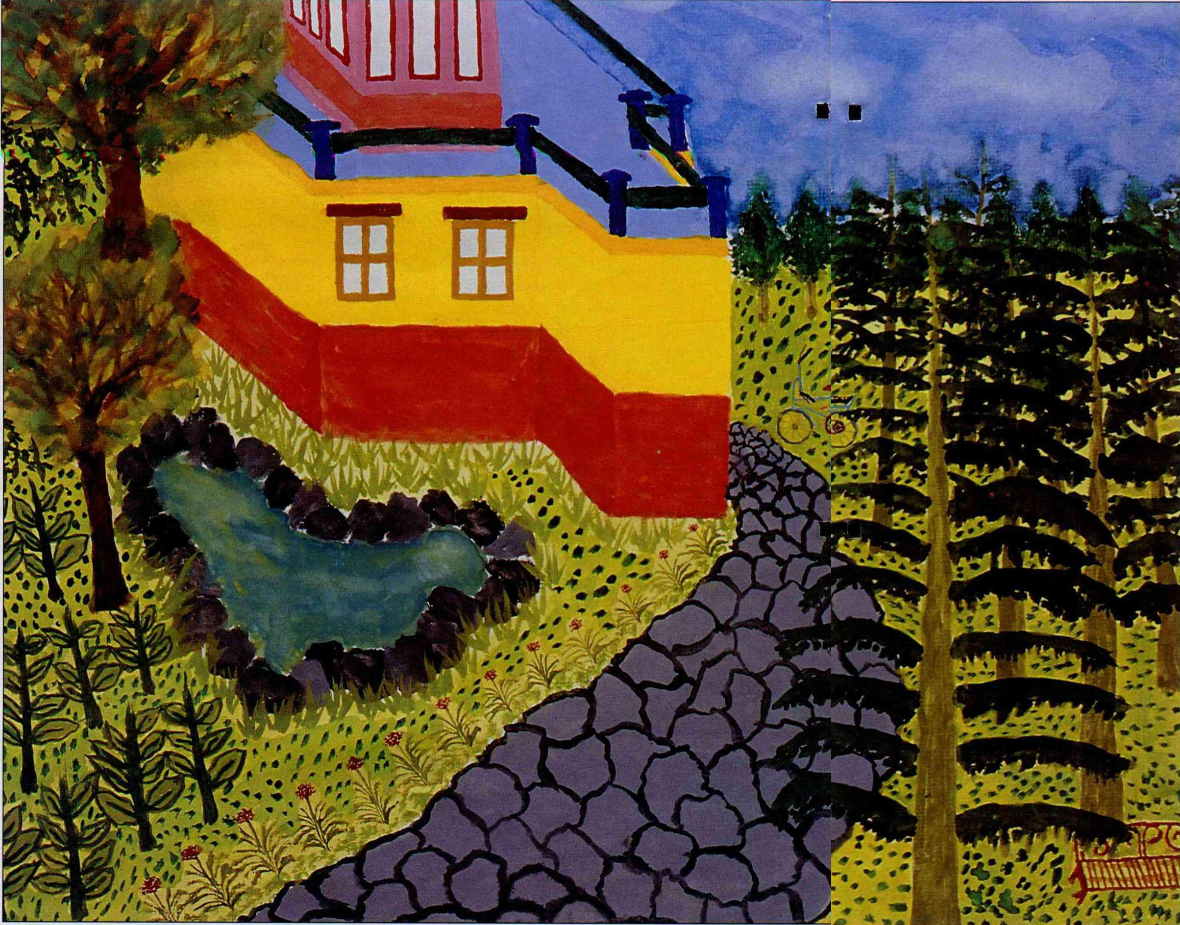 截肢後的阿強,用左手畫了三天三夜,再將這張圖送給他最信任的阿姨。畫上的單車與涼椅,是好動的阿強所嚮往的嗎?(吳玉媛提供)(吳玉媛提供)